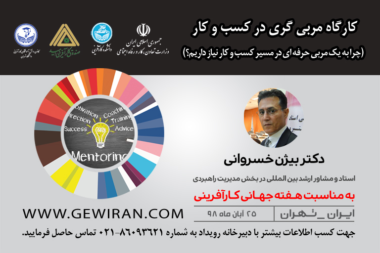 کارگاه “مربی گری در کسب و کار با محوریت پاسخ به این پرسش که چرا به یک مربی حرفه ای در کسب وکار نیاز داریم؟” مورخ شنبه 25 آبان ماه 1398 ساعت 16 الی 18 و همزمان با هفته جهانی کارآفرینی در دانشکده کارآفرینی دانشگاه تهران برگزار شد.